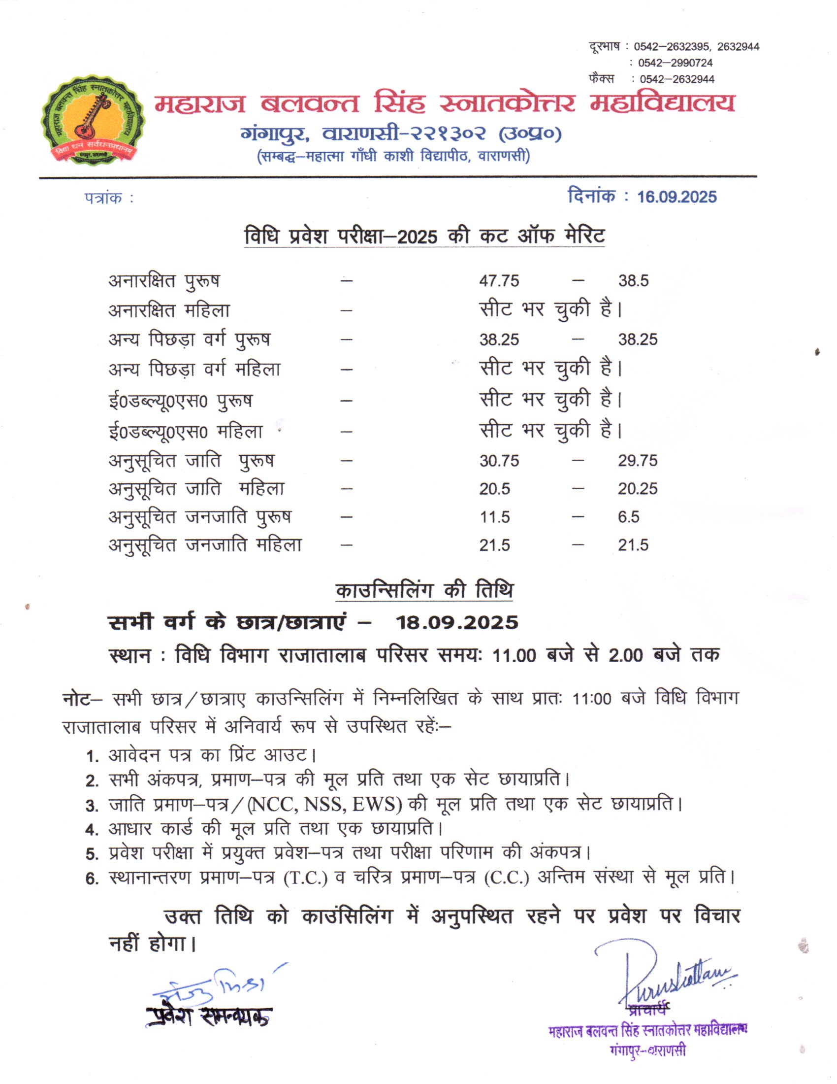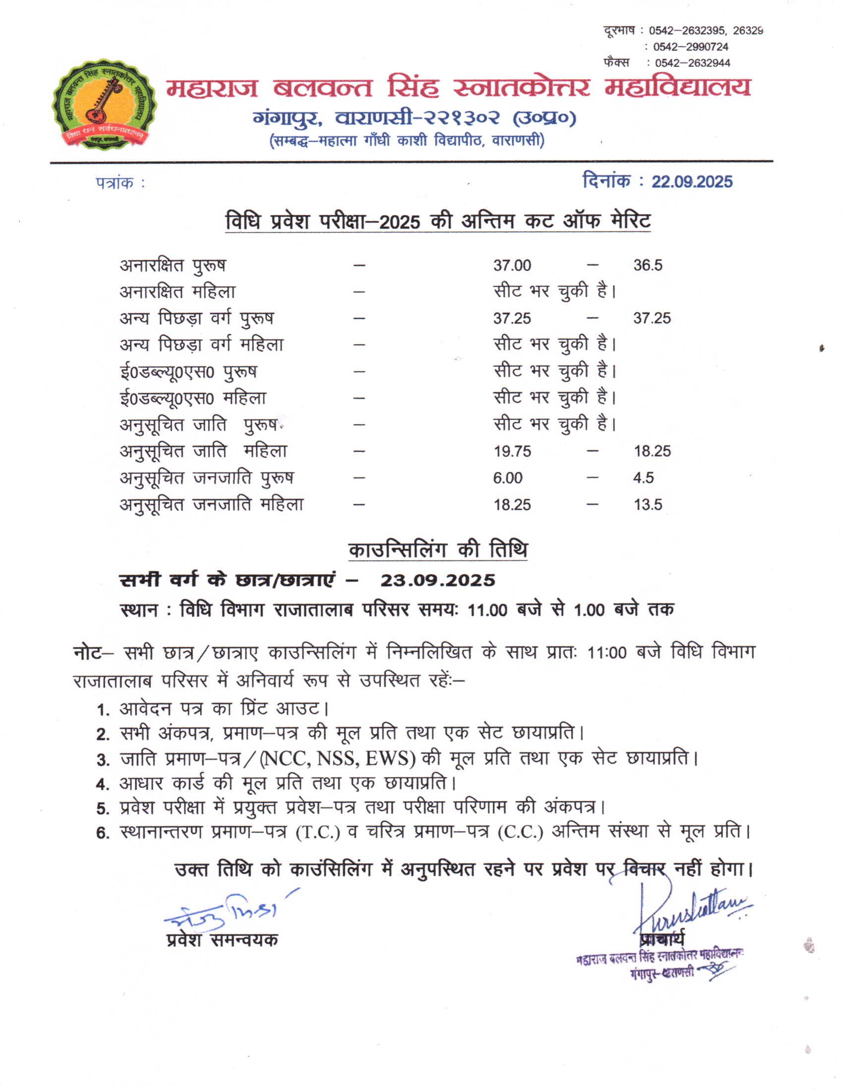 विधि प्रवेश परीक्षा-2025 की अन्तिम कट ऑफ मेरिट
